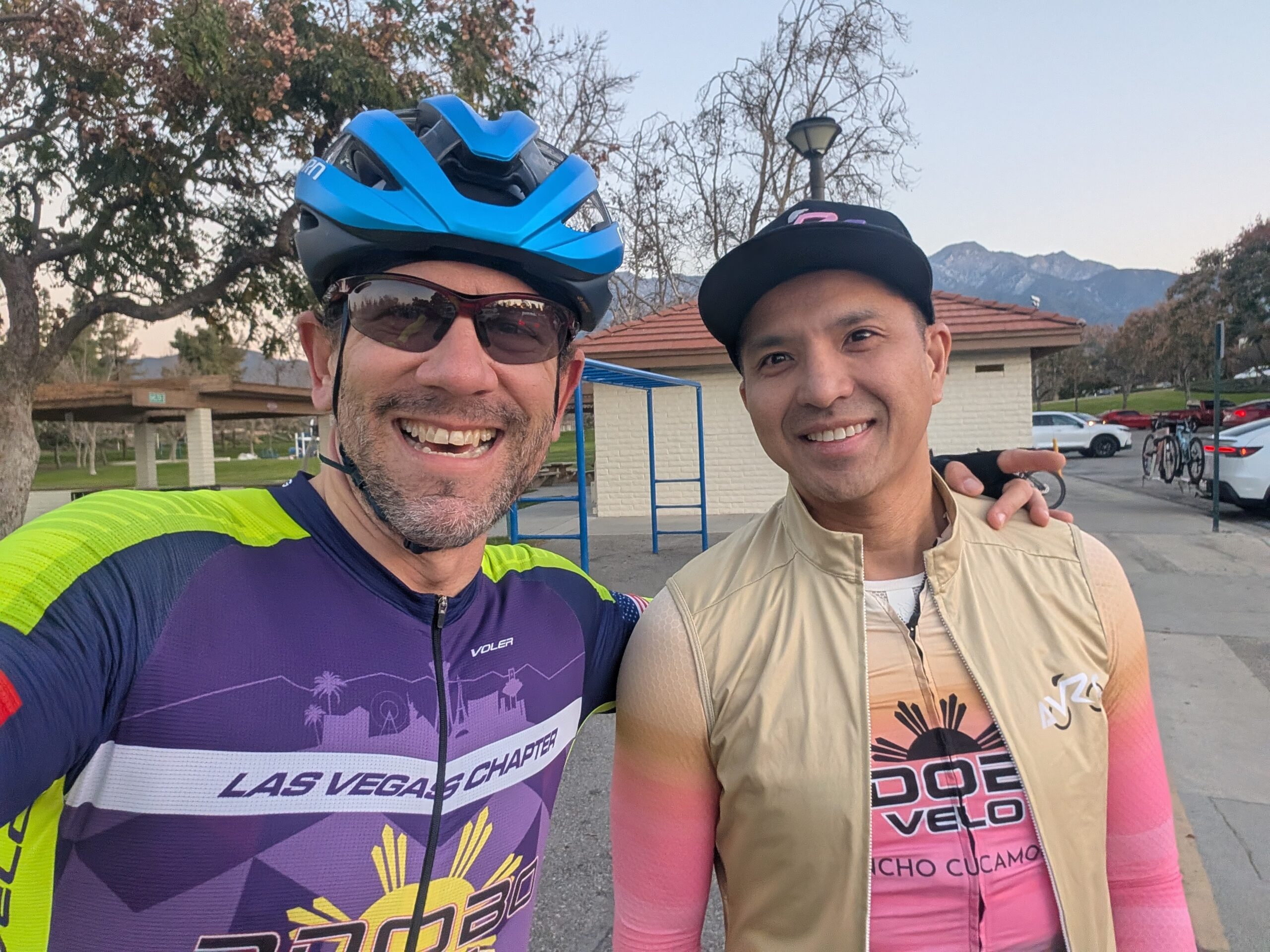 The ride over to Duarte was great. I rode down the Deer Creek Channel Trail all the way to Baseline for a change in route. I’d also posted to Joey’s Strava post regarding the training ride sharing my route and inviting anyone to join me at the corner of Baseline and Haven. I was quite surprised as I stopped at the end of the trail to see an Adobo from Rancho Cucamonga ride by!